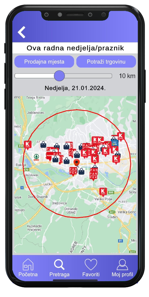 Uz sve navedeno korisnici aplikacije imaju mogućnost jednostavnog pregleda radnih vremena shopping centara i trgovačkih lanaca nedjeljom i ostalim danima.